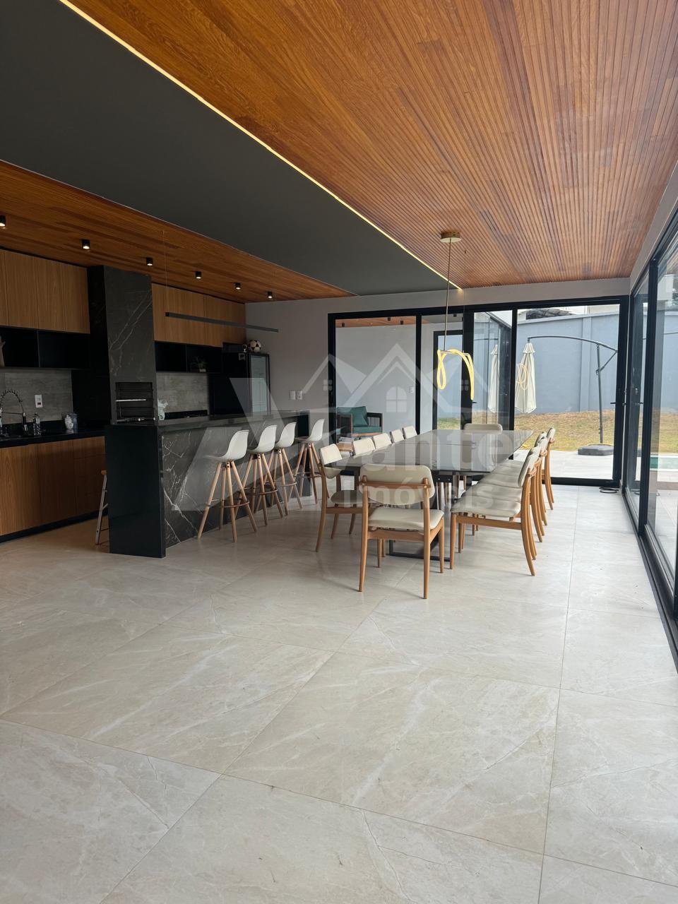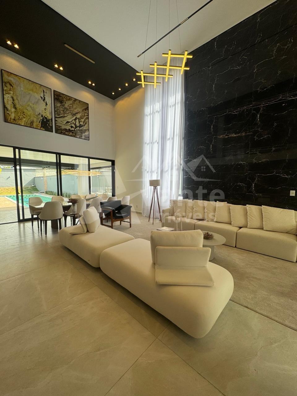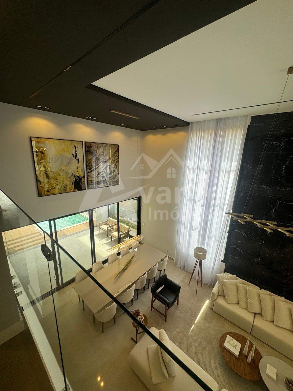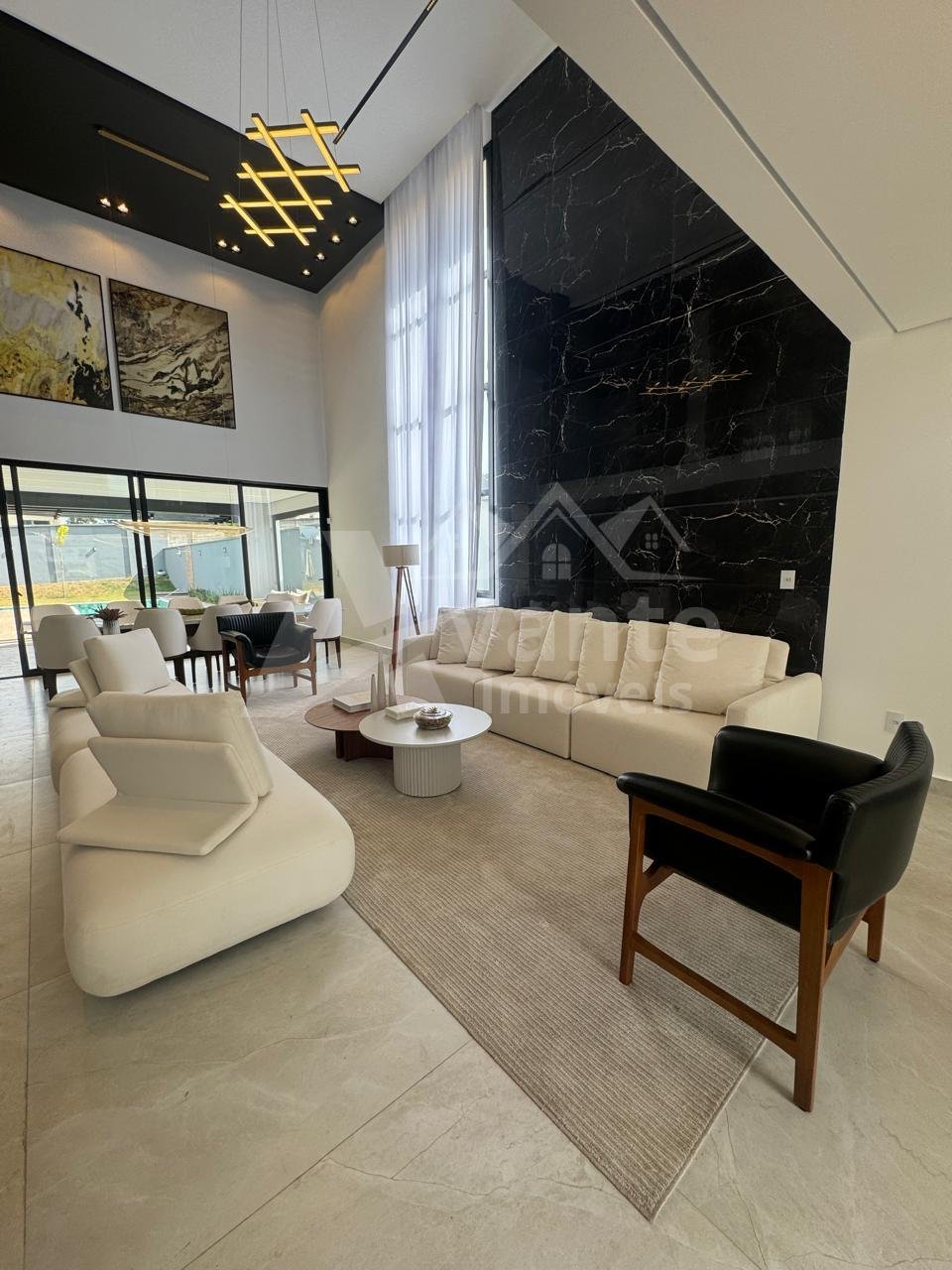 Sala de estar e jantar muito ampla com pé direito duplo