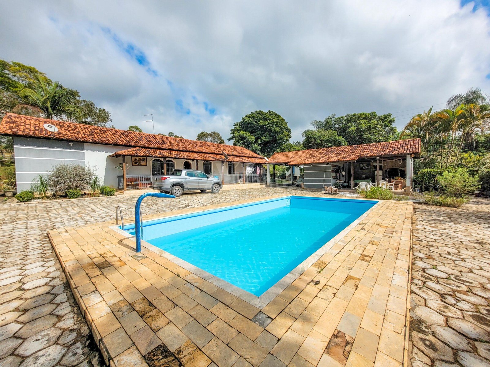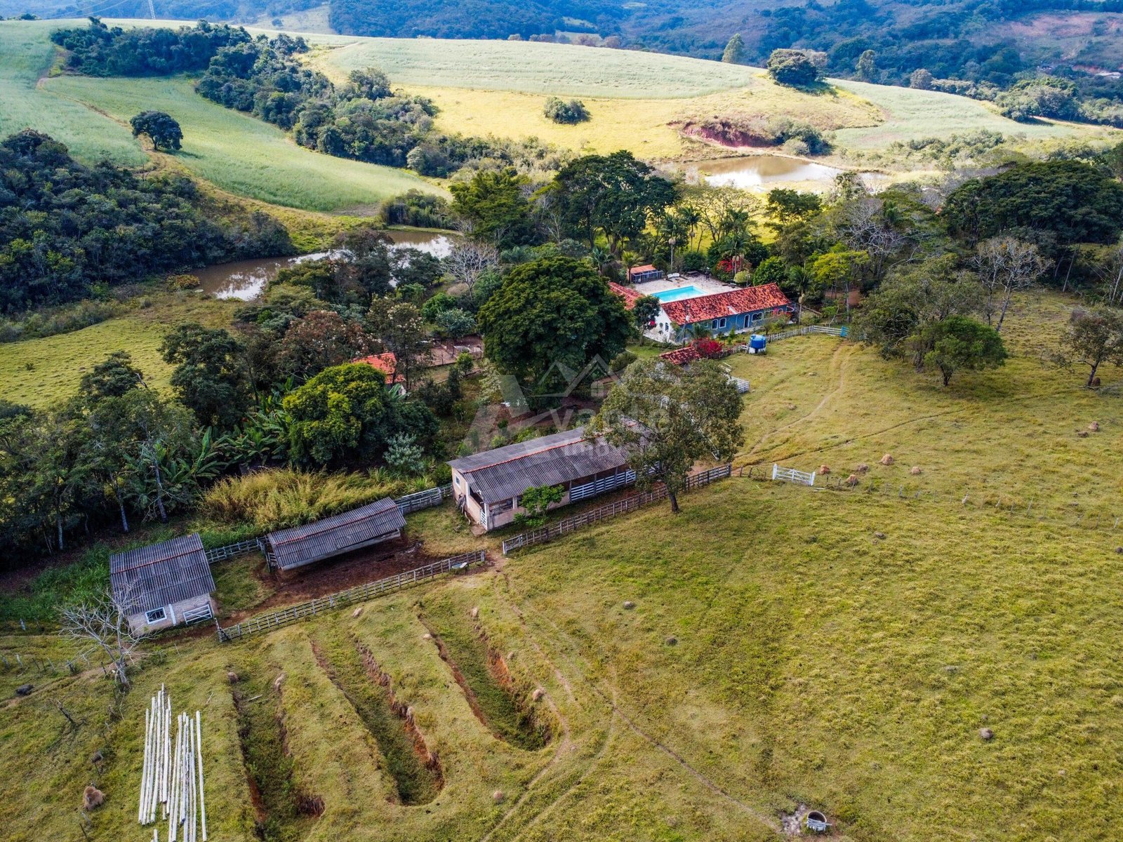São 32 hectares de área total, formado em braquiária, terreno 100% tratorável, bem piqueteado e com nascente. Para atender o uso pecuário e agrícola conta com paiol, casa de ferramentas, curral com banheiro, sala de ordenha e depósito de ração com moedor para silagem.